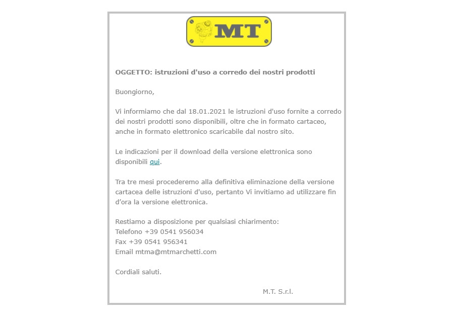 Ab dem 18. Januar 2021 sind die mit unseren Produkten gelieferten Benutzeranweisungen in elektronischer Form verfügbar. M.T. hat ein Projekt durchgeführt, das darauf abzielt,...